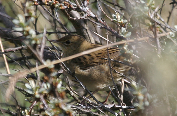 Female Grasshopper Warbler in close association with the male, showing interest but keeping low in the vegetation at Saltfleetby April 18.
